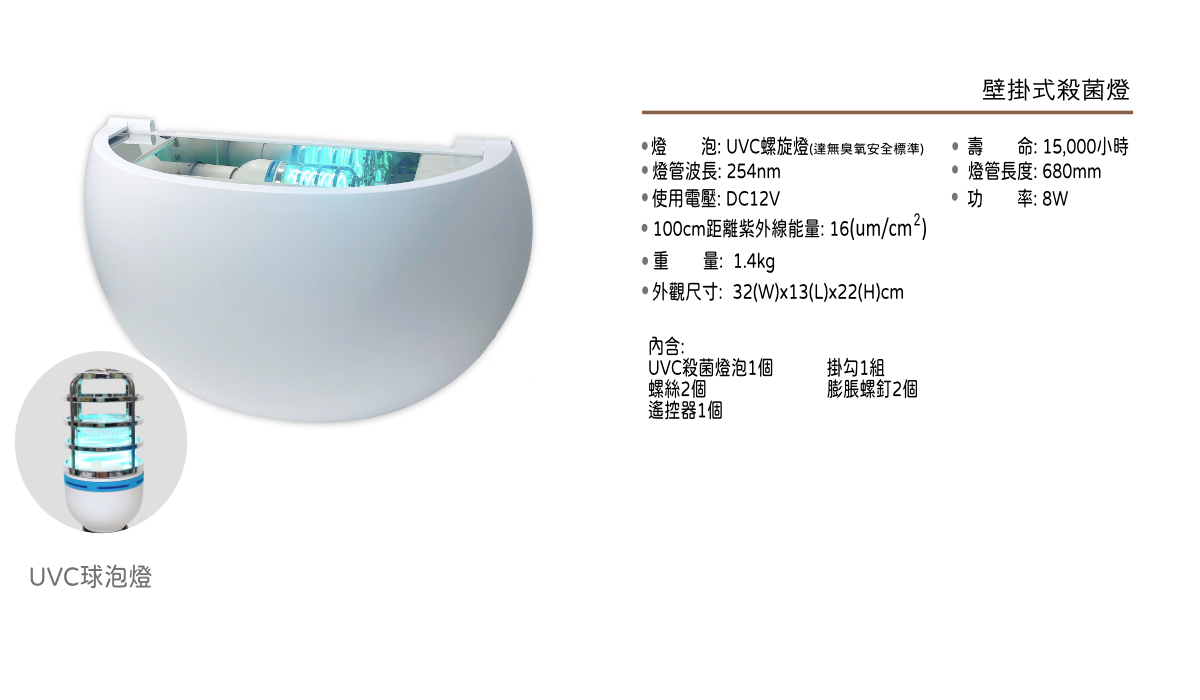 市面上大多UVC殺菌燈,會導致直視時眼精和皮膚受到傷害,UVGI系統可裝置於天花板上,或放置在活動範圍上方,透過通風設備循環,可達到殺菌除臭效果。產品系列有:崁燈式、壁掛式、輕鋼架式